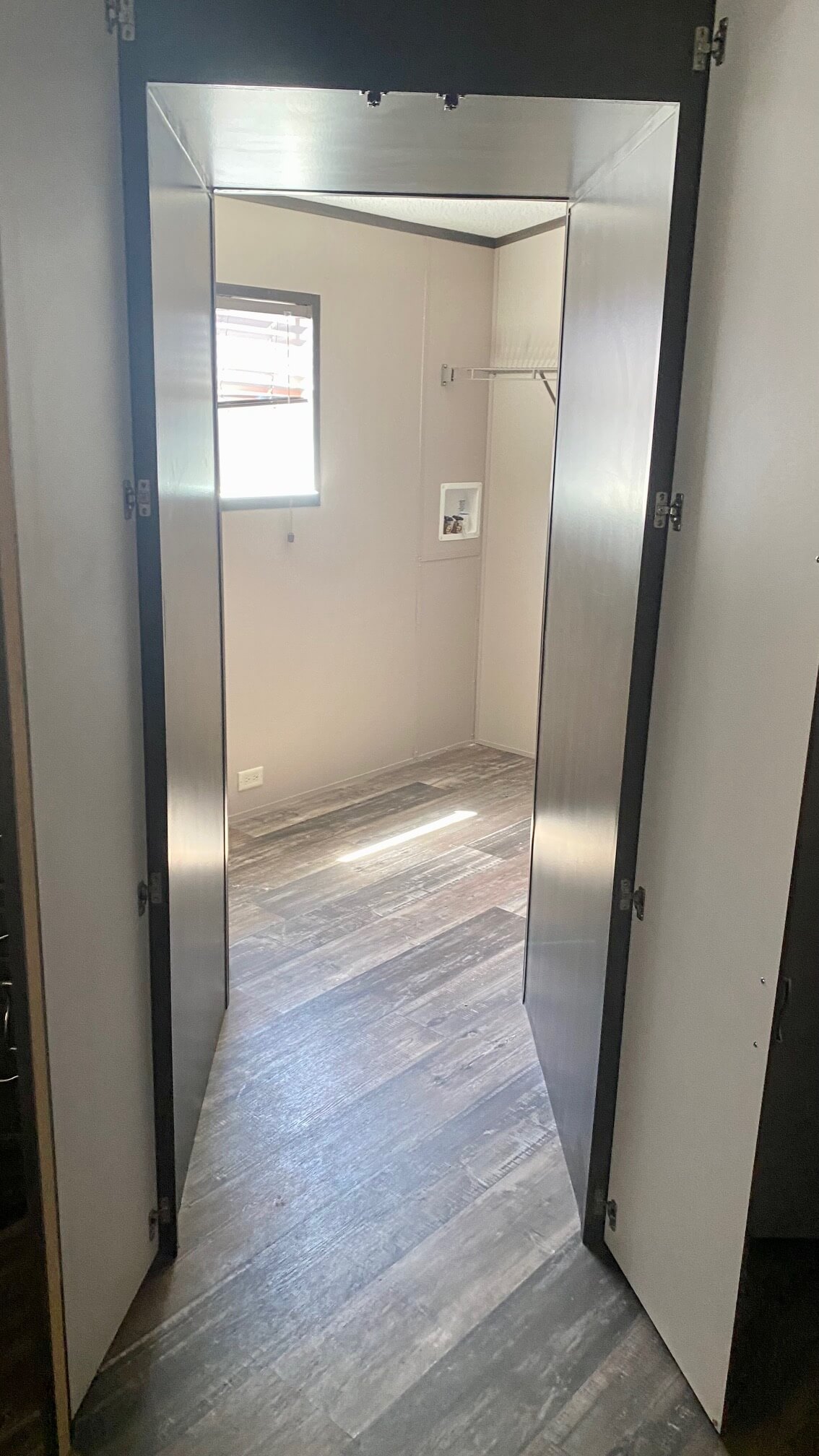 Rear Door: windowed with deadbolt