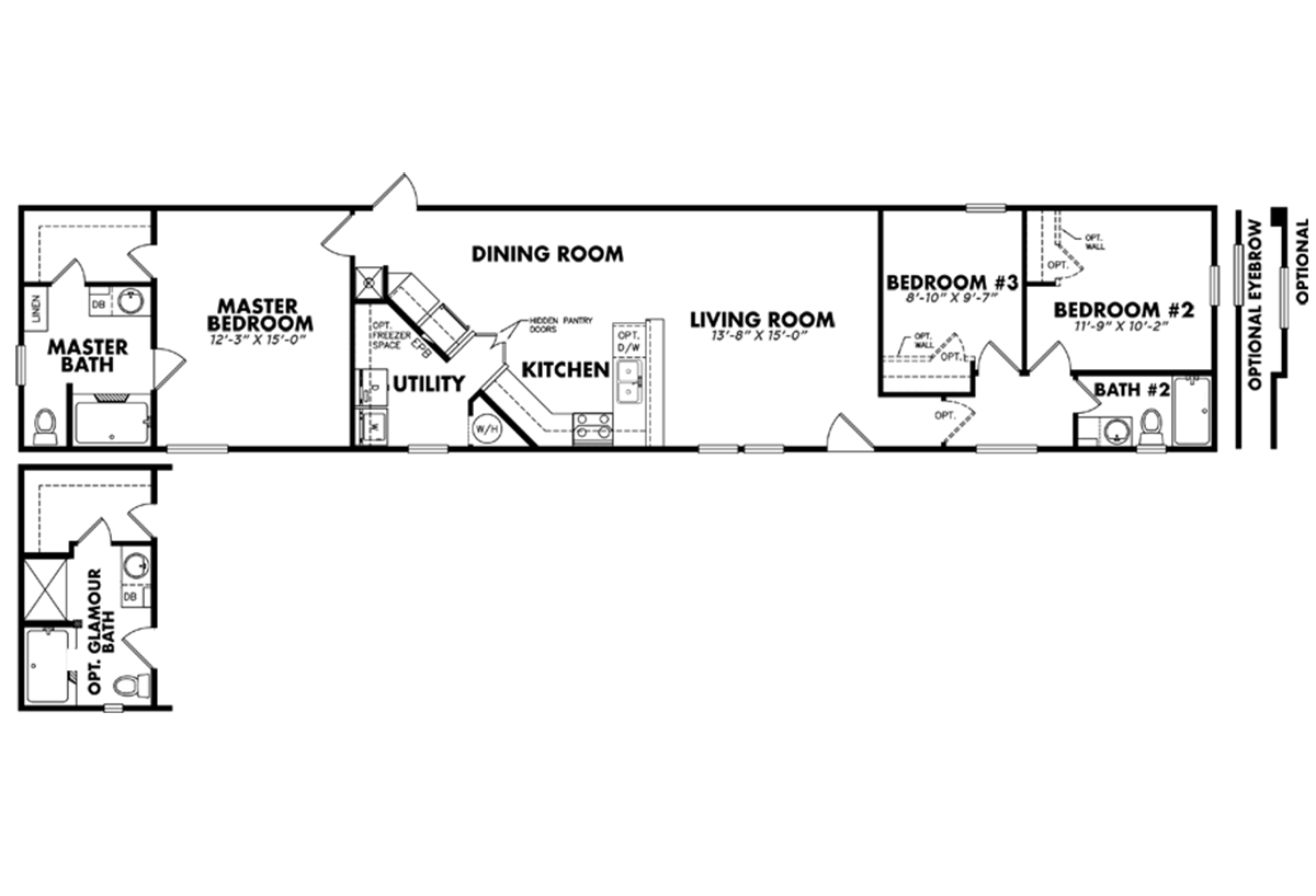 BEDS: 3 BATHS: 2 SQ FT: 1193 W X L: 16′ 0″ x 76′ 0″